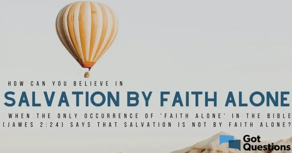 É completamente verdade que o único versículo da Bíblia que contém a frase exata “somente fé” parece argumentar contra a doutrina da salvação pela fé somente. Tiago 2:24 declara: “Vede, pois, como um homem é justificado pelas obras e não somente pela fé” (ESV). No entanto, rejeitar a doutrina da salvação pela fé somente com base neste versículo apresenta dois grandes problemas. Primeiro, o contexto de Tiago 2:24 não está discutindo a doutrina da salvação pela fé somente. Segundo, a Bíblia não precisa conter exatamente a expressão “somente fé” para ensinar claramente a salvação pela fé.
