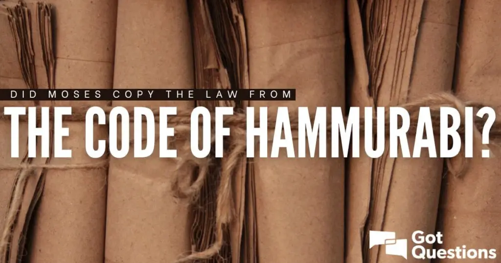 Cerca de 300 anos após Hamurabi, em 1440 a.C., Moisés registrou a Lei para os israelitas. Algumas semelhanças encontradas entre a Lei Mosaica e o Código de Hamurabi levaram certos críticos da Bíblia a acreditarem que Moisés tenha copiado o código babilônico. Se essa hipótese fosse verdadeira – isto é, se Moisés tivesse simplesmente se apropriado das leis dos babilônios – então o relato do episódio no Monte Sinai seria fraudulento e a inspiração das Escrituras passaria a ser questionável.