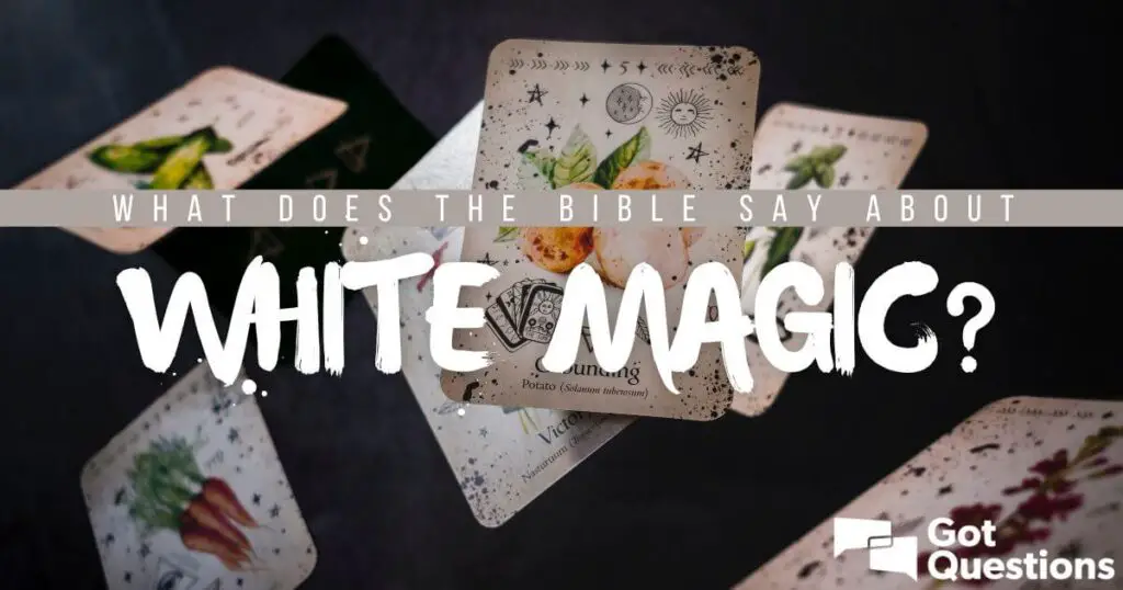 A Escritura deixa claro que Deus repudia todas as formas de magia, seja ela branca ou de outro tipo, porque não provêm d’Ele. Satanás engana as pessoas, fazendo-as acreditar que a magia branca é benéfica, ao mesmo tempo em que se disfarça de anjo de luz (2 Coríntios 11:14). Seu objetivo é atrair e aprisionar o maior número possível de almas. A Bíblia adverte: “Sede sóbrios e vigilantes. O vosso adversário, o diabo, anda em derredor, como leão que ruge, buscando a quem possa devorar” (1 Pedro 5:8).