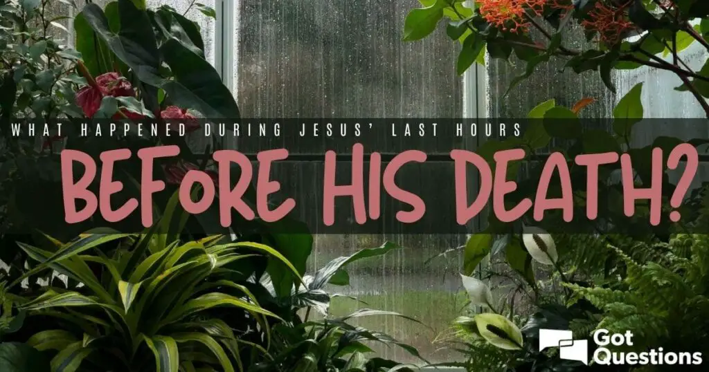 Na noite anterior à Sua morte, Jesus lavou os pés dos Seus discípulos e compartilhou a ceia da Páscoa com eles. Durante esse tempo, Judas foi revelado como aquele que trairia o Seu Mestre. Ao final da refeição, Jesus instituiu a Ceia do Senhor. Depois disso, levou os discípulos até o Jardim do Getsêmani, onde separou Pedro, João e Tiago, pediu que orassem para que não caíssem em tentação e se retirou sozinho. Entretanto, os três adormeceram rapidamente.