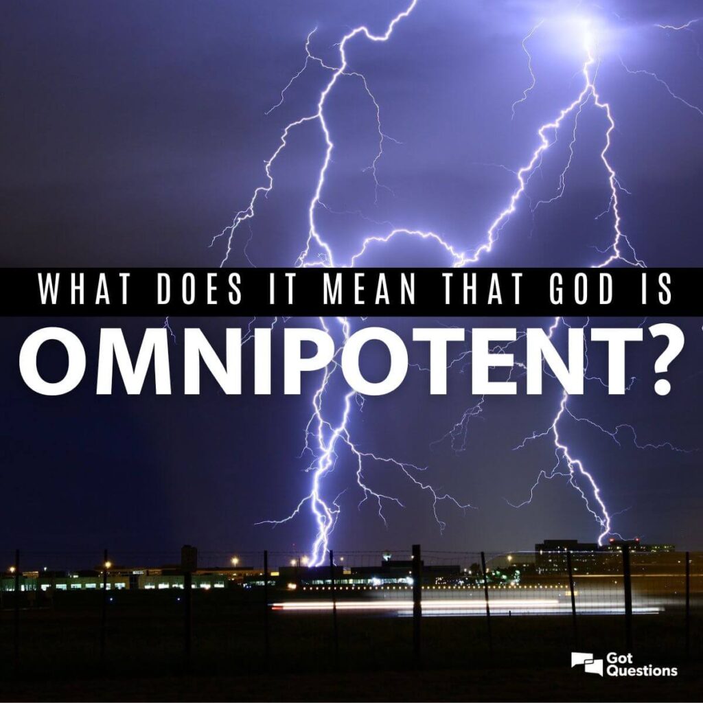 A palavra onipotente vem do prefixo omni-, que significa “tudo”, e de potente, que significa “poder”. Assim como os atributos de onisciência e onipresença, se Deus é infinito e soberano — como sabemos que Ele é — então Ele também deve ser onipotente. Ele detém todo o poder sobre todas as coisas, a todo tempo e de todas as maneiras.