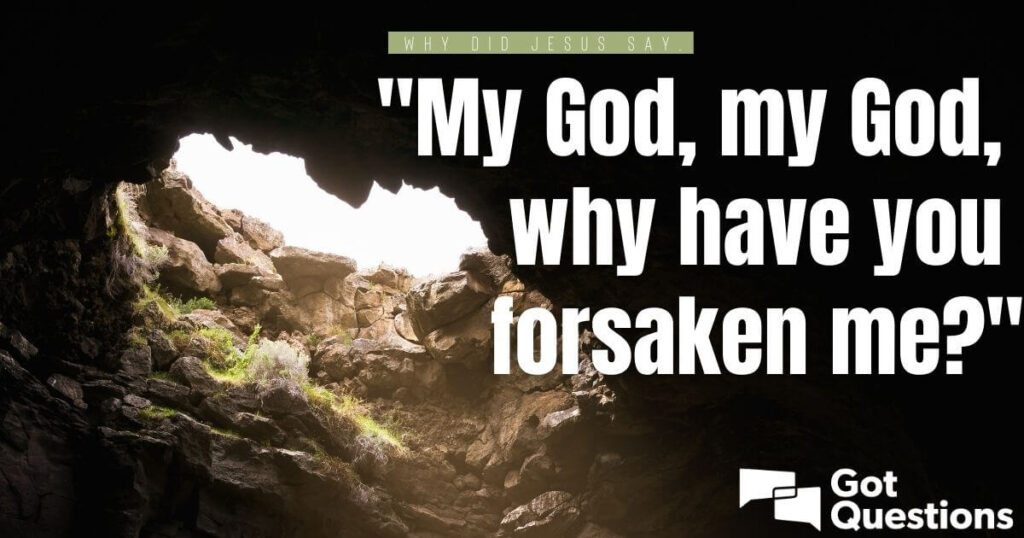 À nona hora, Jesus bradou em alta voz, dizendo: “Eli, Eli, lama sabachthani? Ou seja, Meu Deus, meu Deus, por que me abandonaste?” Esse clamor cumpre o que está escrito no Salmo 22:1, um dos muitos paralelismos entre esse salmo e os eventos específicos da crucifixão. É difícil compreender em que sentido Jesus foi “abandonado” por Deus. É certo que Deus aprovou a obra Dele. É certo que Jesus era inocente, não tendo feito nada para perder o favor de Deus. Como Filho próprio de Deus — santo, inofensivo, incorruptível e obediente —, Ele sempre foi amado por Deus. Em nenhum desses aspectos Deus poderia tê-Lo abandonado.