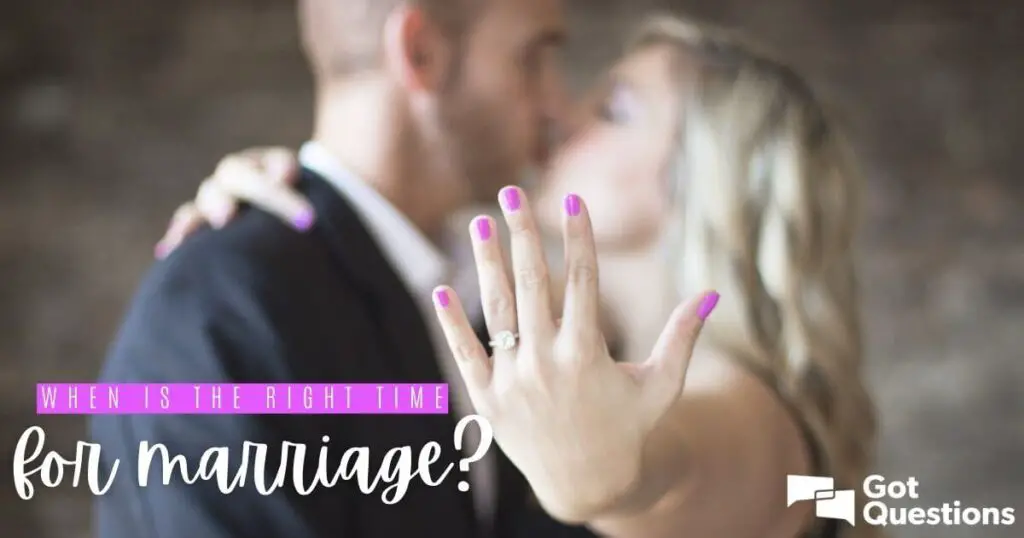 O momento certo para o casamento é diferente para cada pessoa e único para cada situação. Os níveis de maturidade e as experiências de vida variam; algumas pessoas estão preparadas para casar aos 18 anos, enquanto outras jamais se sentem prontas para esse compromisso. Como a taxa de divórcio nos Estados Unidos ultrapassa 50%, é evidente que grande parte da sociedade não vê o casamento como um compromisso eterno. Entretanto, essa visão humana costuma contradizer a perspectiva divina (1 Coríntios 3:18).